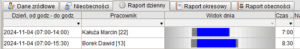 Dodano wizualizacje dnia pracy w postaci pasków danych, czas nie zaliczany do pracy jest w tym widoku szary.